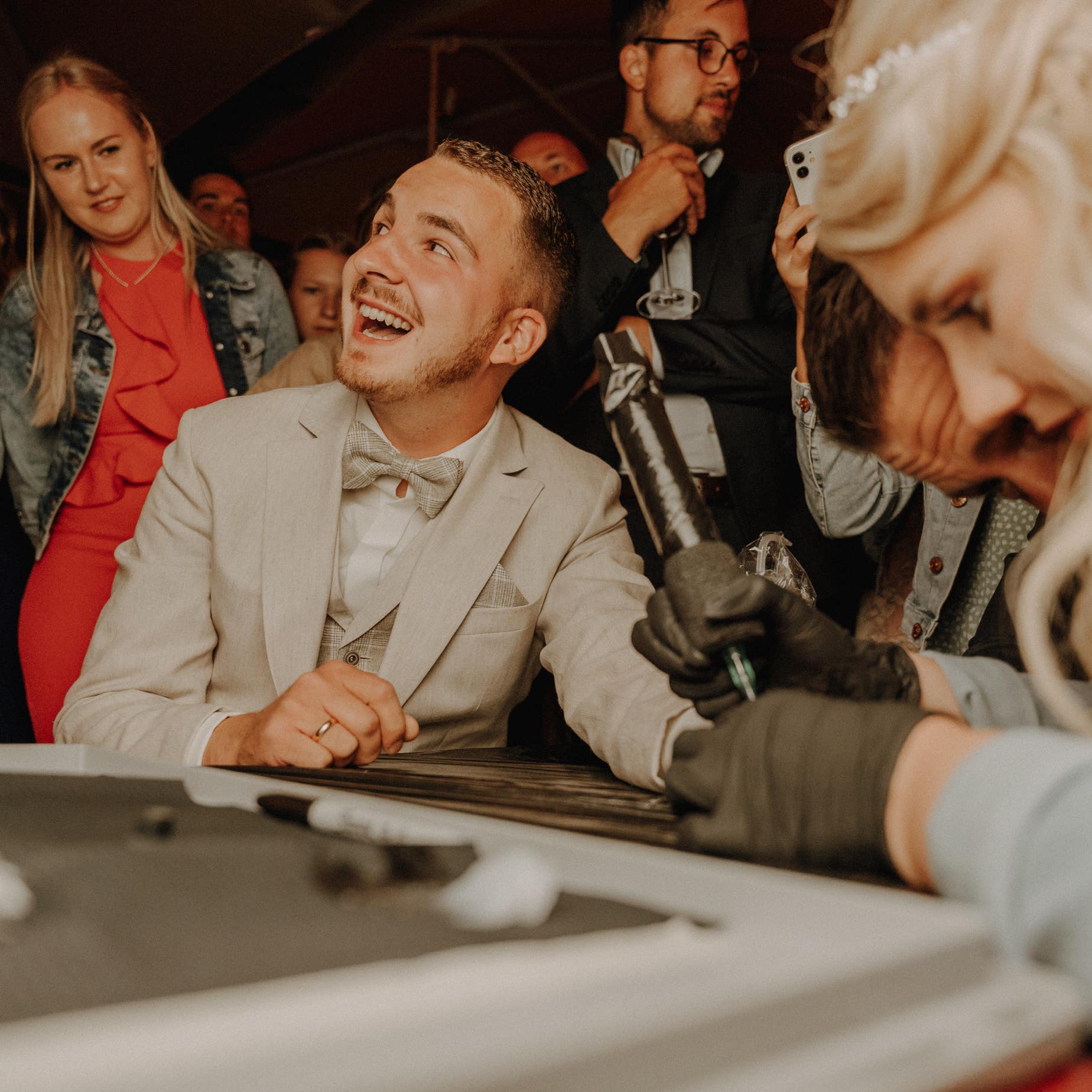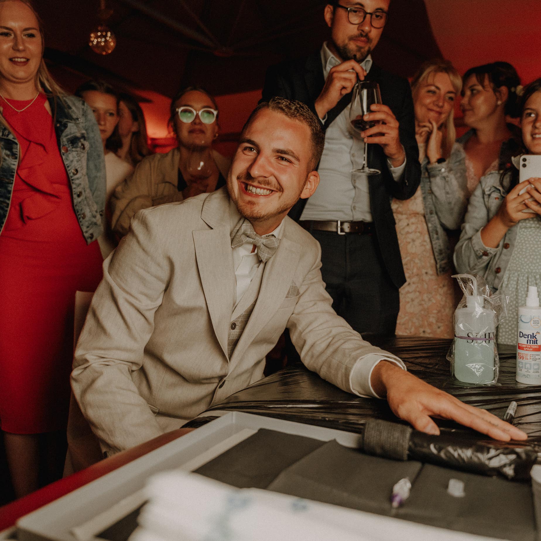 Er war ab früh morgens vom Getting Ready, bis in die späten Abendstunden auf unserer Party dabei und hat traumhafte Momente knipsen können. Er versteht es perfekt die Situationen einzufangen und für die Nachwelt festzuhalten. Die zahlreichen bearbeiteten Bilder erhielten wir nach nur kurzer Zeit über einen Link, mit dem man auf eine eigene online Galerie zugreifen kann. Somit wurde es uns super leicht gemacht, die Bilder mit unseren Gästen zu teilen. Jeder erhält alles in top Qualität zum einfachen Download. Es gab nur gutes Feedback der Gäste, was für sein symphatisches Auftreten und seine Arbeit spricht. Wir würden Pierre jedem empfehlen.